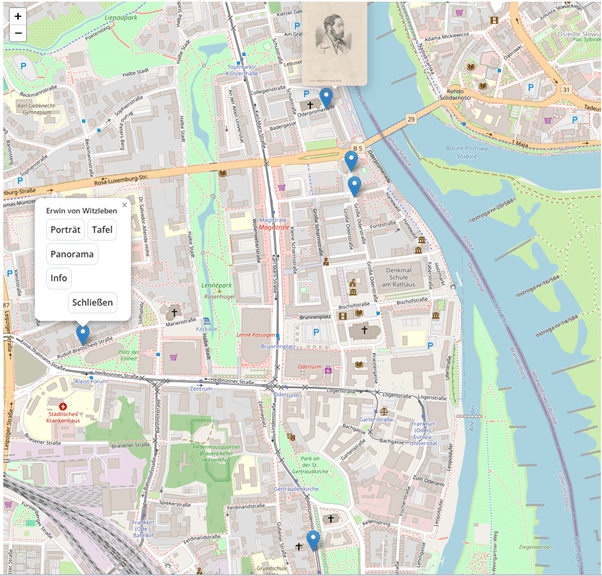 Marker-Tooltip: Maus über Marker → Foto der geehrten Person