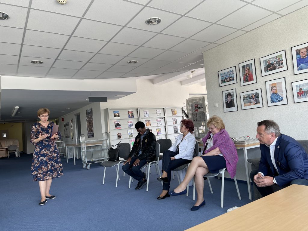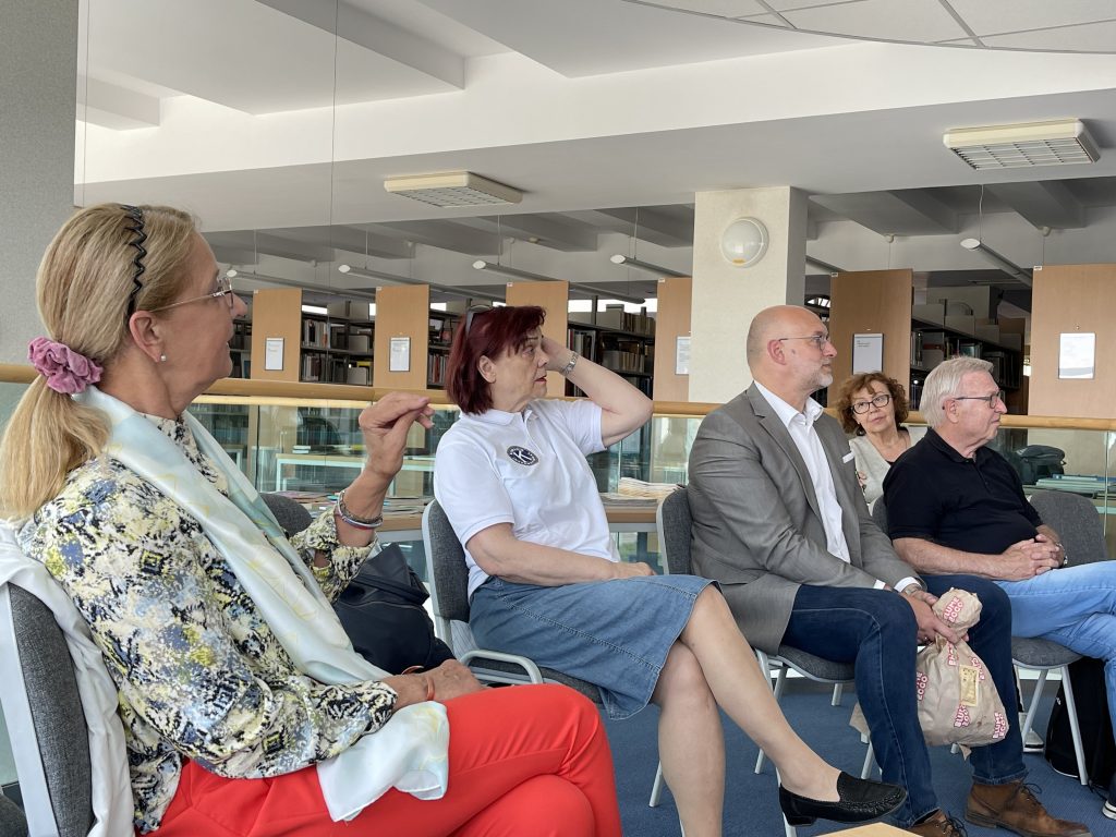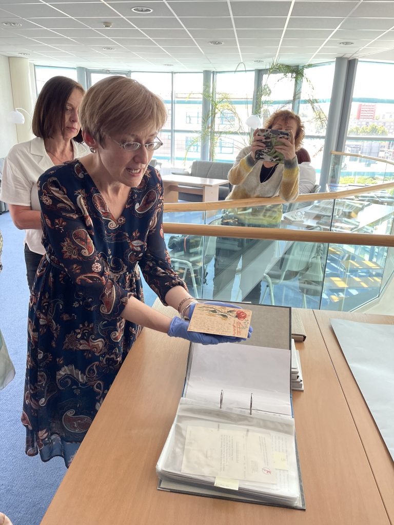 Während des Treffens hatten wir die Gelegenheit, die Geschichte und das moderne Gesicht ausgewählter Objekte in Słubice und Frankfurt kennenzulernen. Wir haben unsere Pilgerfahrt durch die Europäischen Doppelstadt von der Bibliothek Collegium Polonicum begonnen, wo sich das Literatur Archiv befindet. Das Karl Dedecius Archiv, wo das Vermächtnis von sechs hervorragenden Übersetzern polnischer und deutscher Literatur beherbergt ist (Henryk Bereski, Erich Dauzenrot, Karl Dedecious, Rolf Fiegut, Roswithy Matwin Buschmann, Hubert Schumann, Eugeniusz Wachowiak und Karin Wolff). Die Institutionen – wie Małgorzata Rychlik (Vizedirektorin der Bibliothek des Collegium Polonicum) erinnerte – widmet sich der Idee, die polnisch-deutsche Beziehungen durch Literatur und Kunst zu verändern. Nach ihrem Vortrag und einer interessanten Diskussion konnten die Teilnehmer wertvolle Sammlerstücke bewundern.