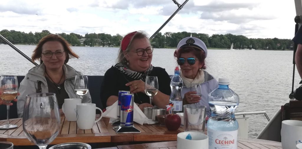 Zusammen mit unseren Freundinnen des Kiwanis Clubs „Adsum“ aus Zielona Góra starteten wir zu dieser kurzweiligen Kreuzfahrt über den Scharmützelsee. Rechtzeitig trafen wir uns am Anleger beim Cecilienpark in Bad Saarow und schifften ein. Unsere Kreuzfahrt-Kapitänin und Kiwanis Präsidentin Sabine Zinke begrüßte die hochmotivierten und gut gelaunten Mitreisendenden. Alle Teilnehmer führten die Fachgespräche vom Müllrose Workshop fort, diskutierten intensiv über Tourismus in Brandenburg und der Wojewodschaft Lubuski, fanden Gemeinsamkeiten, aber auch Unterschiede und zogen Vergleiche über die Rolle des Tourismus in beiden Teilen der deutsch polnischen Euroregionen.