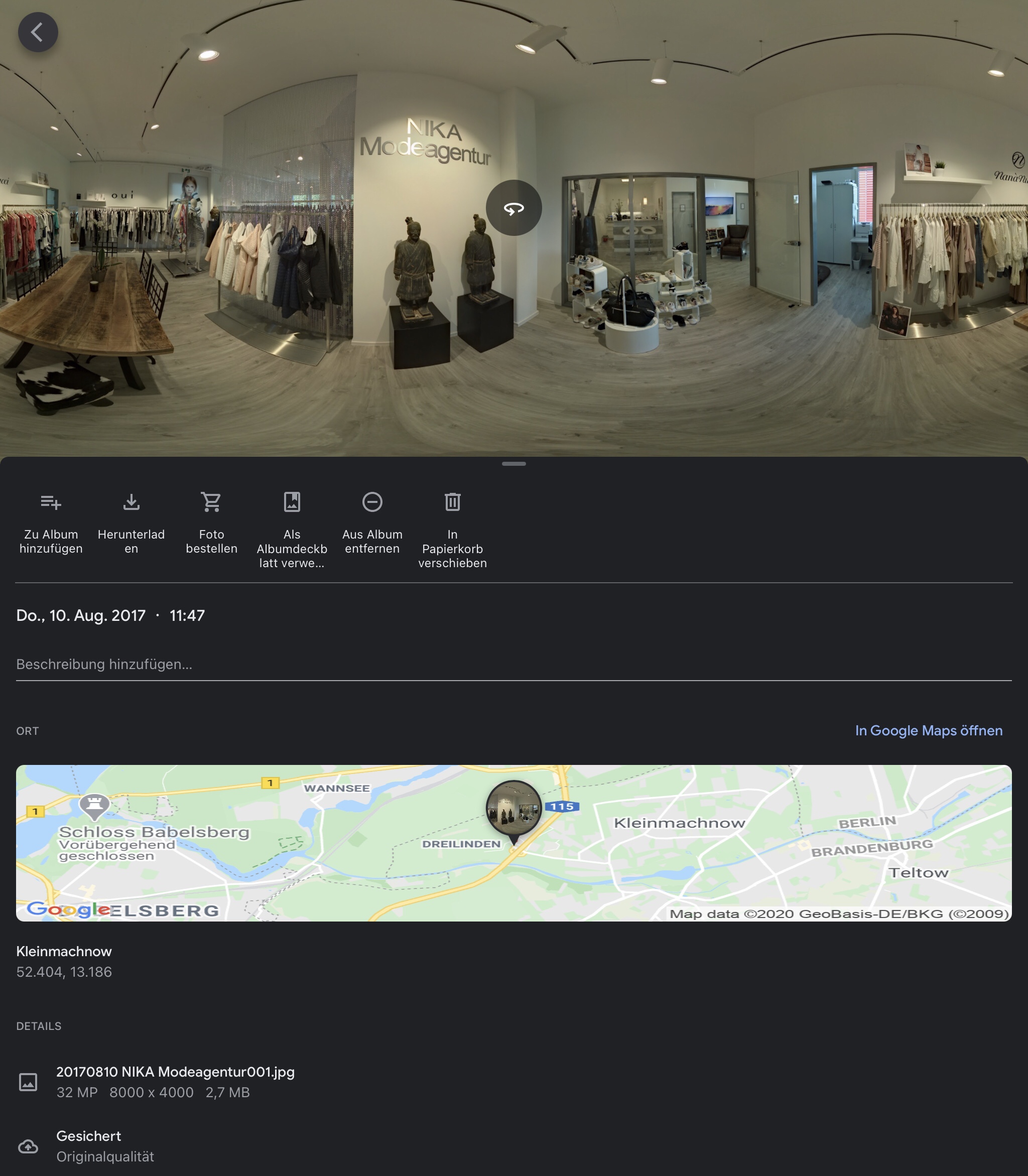 Nachfolgend unter Nutzung der Google Fotos Cloud:
